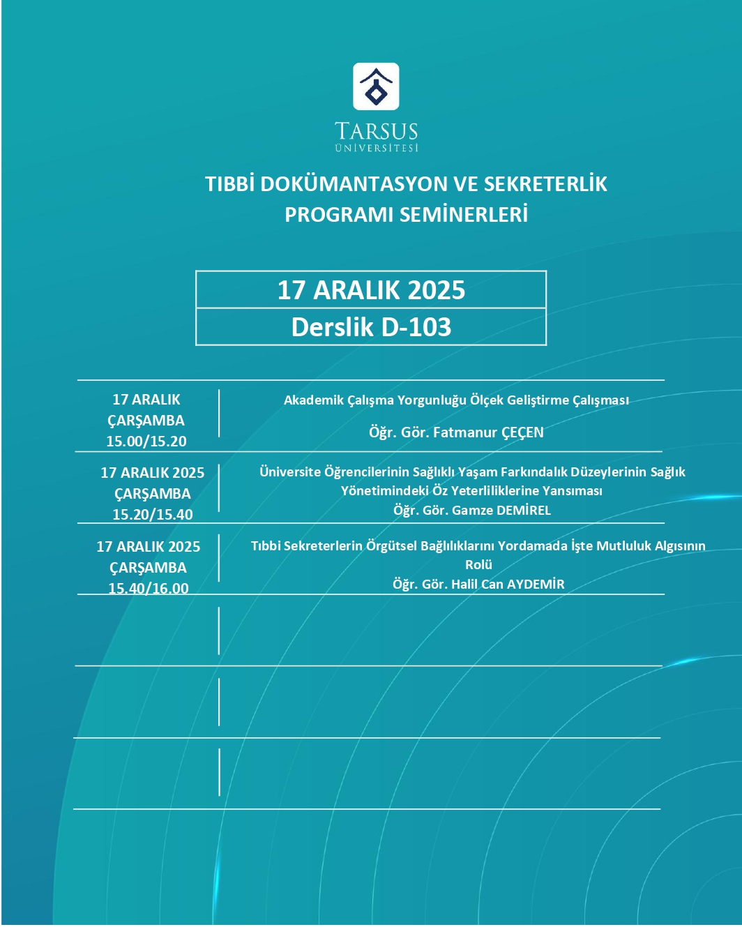 2025-2026 Eğitim-Öğretim yılı Güz Dönemi Final Sınav Programı Yayınlanmıştır.